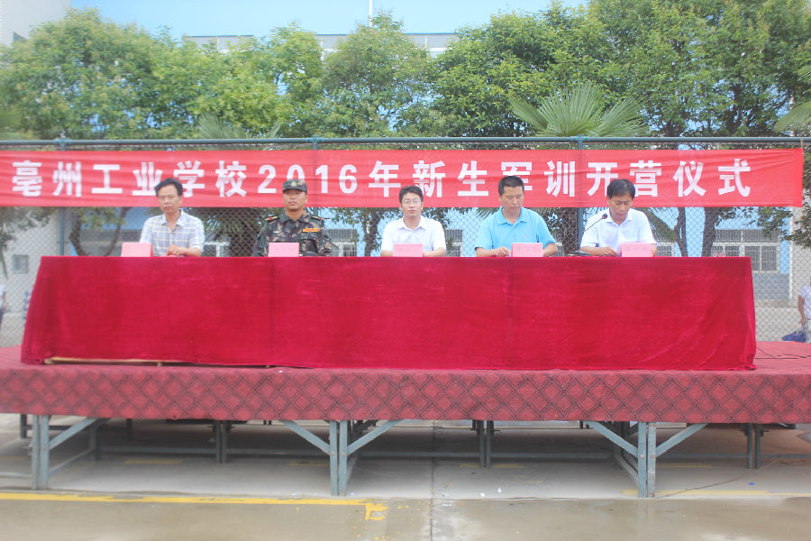 8月22日下午,亳州工业学校新生军训开营仪式在学校广场隆重举行。校党支部书记、校长孙结红出席仪式,副校长谢学才、校长助理崔居杰,亳州军分区教官张飞翔,学生处主任李兴华,全体2016级新生及班主任等参加了军训开营仪式。仪式由谢学才主持。