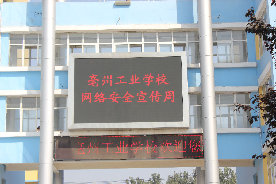 9月19日上午,在学校多媒体报告厅举办亳州工业学校网络安全宣传周启动仪式,并在校园网开辟网络安全专栏,将热点问题放于专栏供师生学习。9月20日,学生处在学校主要场所悬挂“共建网络安全,共享网络文明”等内容的宣传横幅,在电子屏上滚动宣传网络安全口号。9月20日,由学生处牵头,各部门配合,充分利用微博、微信等宣传网络安全知识,开展线上、线下活动。9月22日,印刷网络安全知识宣传单,分发到各班。学生处还通过办公系统,将宣传周活动相关信息发送给每位教职工。