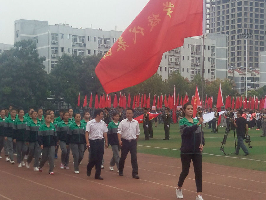 亳州工业学校学生会成员代表我市市直学校组成运动员方阵,参加了盛大的开幕式典礼。下午四时,引导员身着亳州工业学校校服,手举市属学校的旗帜,带领着步伐矫健、气宇轩昂的学生方阵,呼喊着嘹亮的口号,整齐划一地走过主席台。雄赳赳、气昂昂的升旗仪式,运动员们满怀激情,高亢激扬的国歌声充分体现我市运动健儿拼搏进取的时代精神;入场式结束,每位方阵成员又如同苍松般昂首挺立,笔挺的站姿又折射出我市职业学校学生纪律严明的思想风貌。