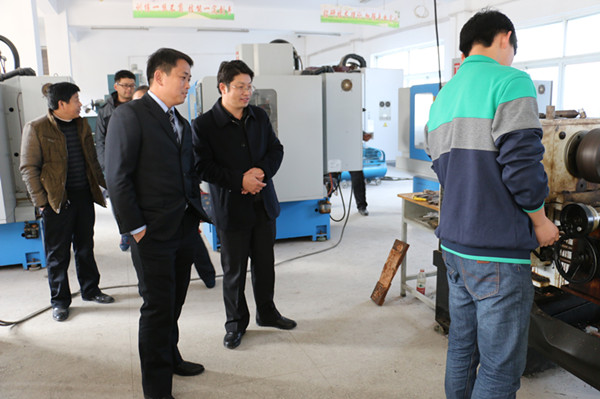 亳州工业学校党支部书记、校长孙结红对崔永峰一行表示热烈欢迎并热情接待。并详细阐述了该校的历史沿革、基本情况、重点专业建设、师资状况、招生就业等各方面情况;崔永峰一行实地查看了该校校企合作挂牌室、汽车实训基地、数控专业实训基地等功能室、校园环境等情况。并对该校近年来各方面取得的成绩给予充分肯定,特别指出亳州工业学校近年来在校企合作方面取得的成就,并就双方校企合作事宜作了三方面更深方向的合作:一、成立中联重机冠名班,实施校企联合招生。二、2015级汽修专业与数控专业学生到中联重机亳州有限公司跟岗实习。三、由亳州工业学校牵头,成立现代加工制造业教育集团。