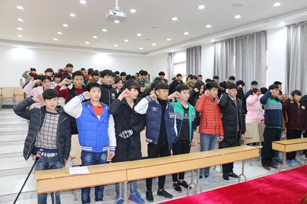 12月8日下午,亳州工业学校团委在多媒体教室举行了隆重而又神圣的共产主义青年团入团宣誓仪式。学校各班级抽取了3名新团员代表参加了仪式。