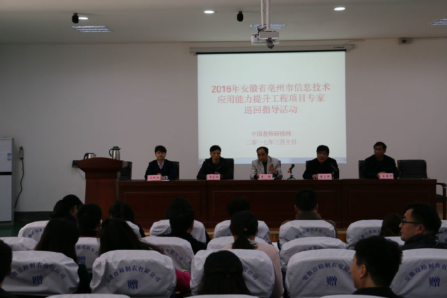 2017年3月10日下午,亳州市信息技术应用能力提升工程项目专家巡回指导活动在亳州工业学校录播教室举行,来自各市直学校的继续教育工作坊坊主、信息员和信息技术老师参加了本次活动。