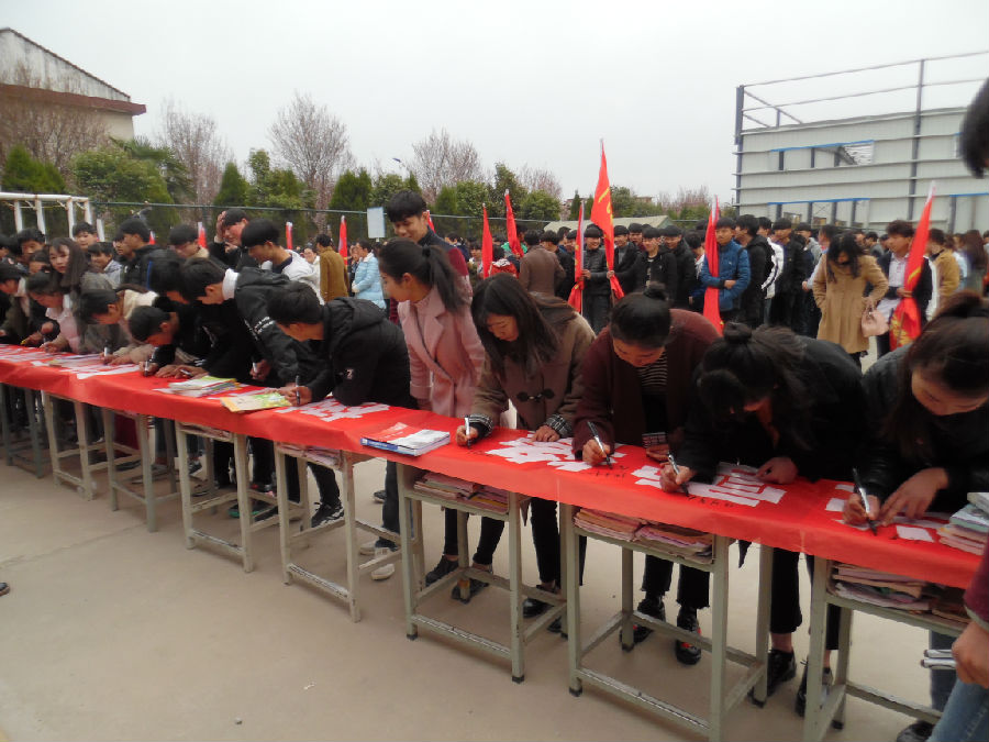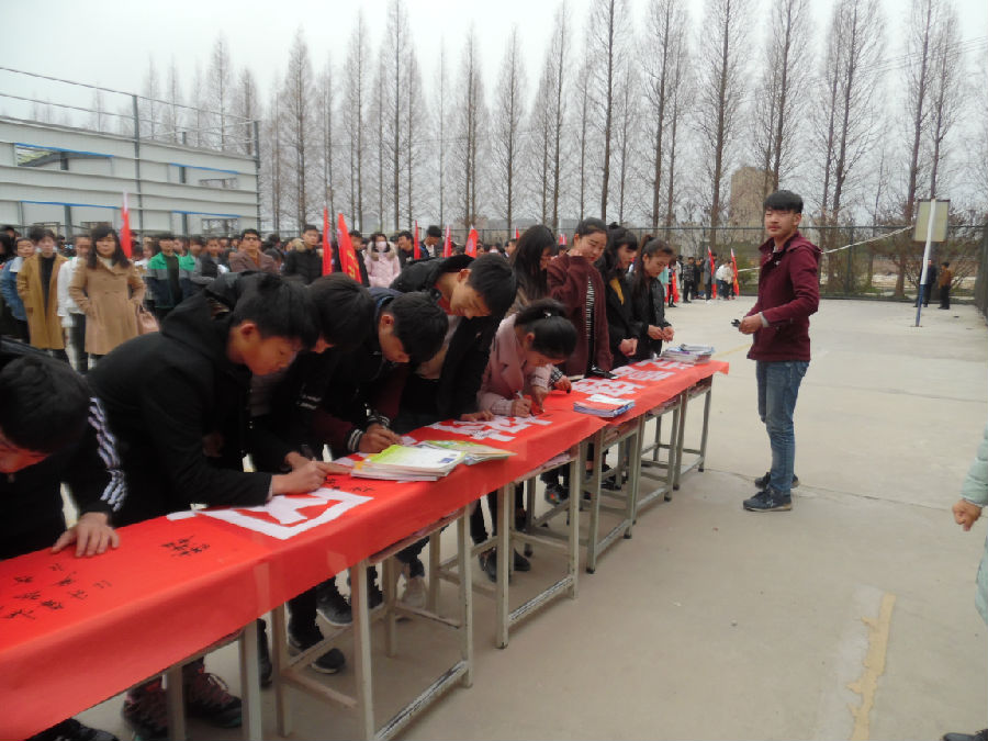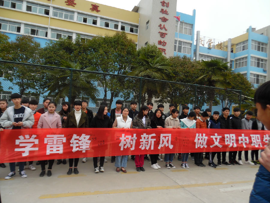 烟花三月,春暖大地,雷锋精神是我们中华民族的精神财富。三月是学雷锋月,为了响应市团委的号召,亳州工业学校在三月将举行一系列的学雷锋活动。在3月14日的早晨,我校举行了学“雷锋”活动的签字仪式。主要包括三项内容: 首先,学生处主任李兴华宣布学雷锋活动月启动,并给学生讲授雷锋精神;其次,全校师生一起诵读雷锋语录;最后各班学生代表在“学雷锋,树新风,做文明中职生”条幅上签字。