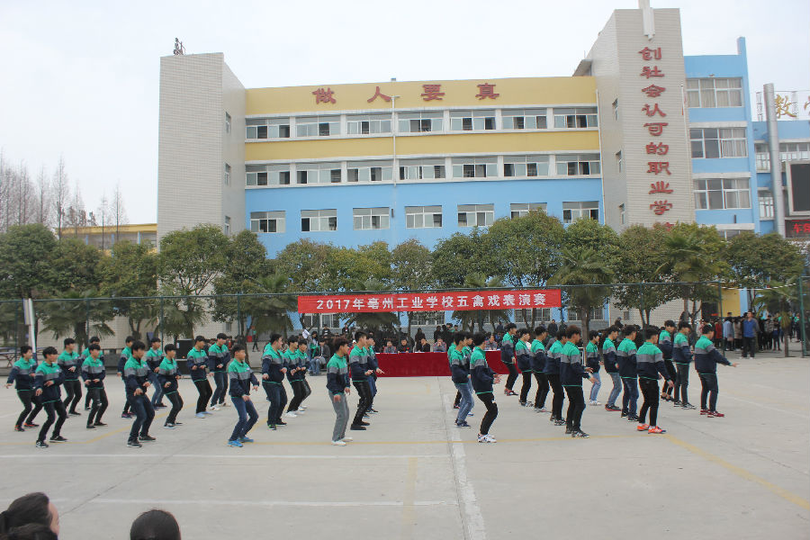 为进一步弘扬和培育民族精神,传承中华民族非物质文化遗产,丰富学生的课余生活,促进学生的身心健康,3月16日下午,亳州工业学校在校园小广场举行了五禽戏表演赛。除中专实习班级和初中以外,全校38个班级参加了本次活动。展演赛由该校学生处主任李兴华主持。
