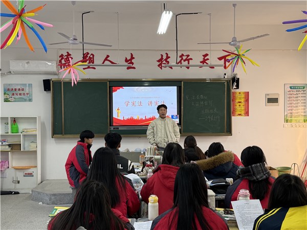同日,各班还相继召开了“宪法在我心,法治伴我行”主题班会。班主任通过PPT展示、播放普法宣传片、案例分析、互动讨论等多种形式,向学生普及宪法知识、解读法律条文,引导大家深入思考宪法与个人成长的密切联系,增强辨别是非和自我保护的能力。