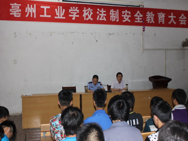 最后,亳州工业学校领导张杰同志对此次安全大会进行了全面的总结,还就学生中存在的一些不良行为习惯进行了全面的剖析,要求学生坚决抵制、杜绝那些不良的行为习惯,把自己培养成为一个遵纪守法的好学生。