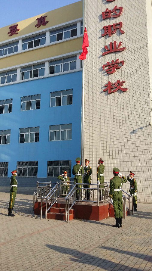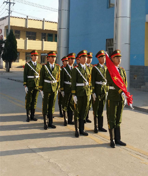为了加强学生爱国主义教育,让学生从中获取荣誉感、自尊感。亳州工业学校从全校选拔出10名优秀学生进入“国旗班”。这也是我校第一个校园“国旗班”。经过前期筹备、选拔、训练,今天是国旗班第一次着装进行升旗,国旗班的队员早早的换好了服装列队等待着升旗的一刻到来。