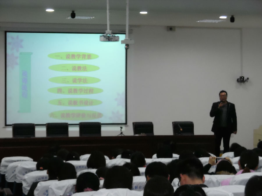 为全面贯彻孙结红校长关于我校教师素质提升计划,促进教师专业成长,夯实教学基本功,提升教师专业水平,展现学校教师教学风采, 3月31日教务处组织全体教师在学校录播教室举行了说课培训活动。