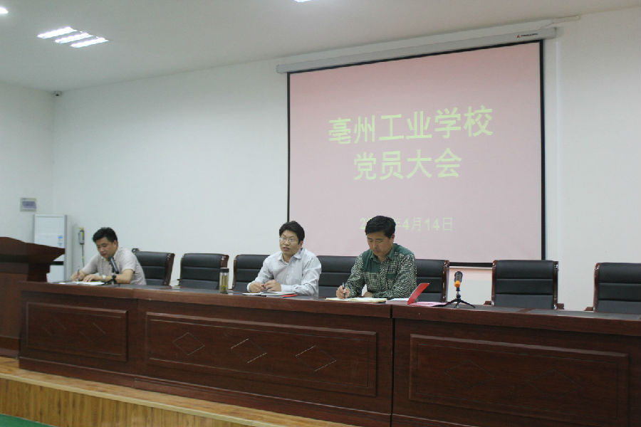 4月14日下午,亳州工业学校“两学一做”学习教育动员会在校多媒体报告厅举行。校党支部书记、校长孙结红作“两学一做”动员报告。副校长谢学才就《关于在全校党员中开展“学党章党规、学系列讲话,做合格党员”学习教育实施方案》进行了说明,会议由教务主任徐林虎同志主持,全校中层以上干部及全体党员教师参加了会议。