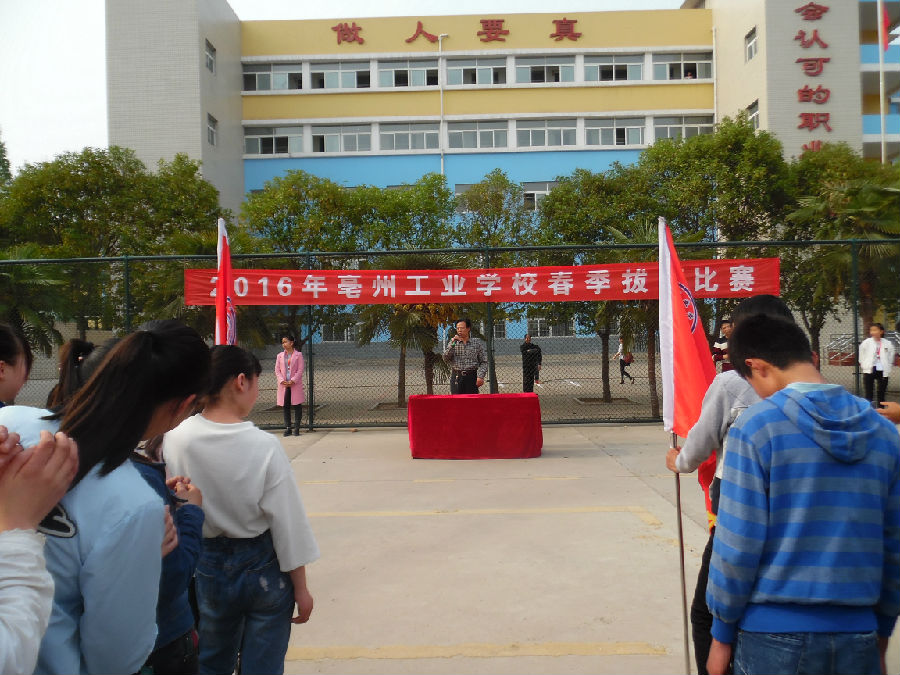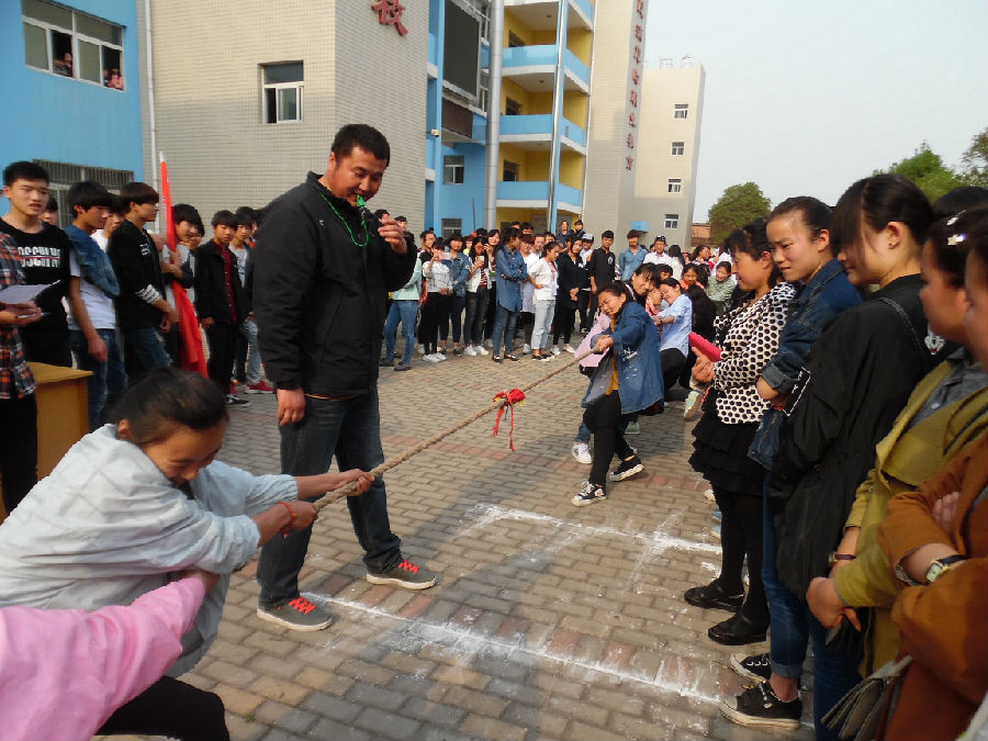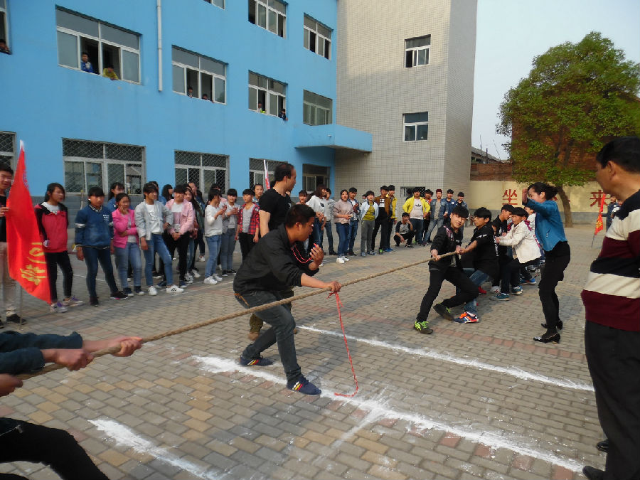为丰富学生的业余文化生活,促进学生身心健康,增强同学们的凝聚力,营造团结互助、文明向上的校园文化氛围,2016年4月13、14、15日下午,亳州工业学校积极组织全校学生参加了拔河比赛。