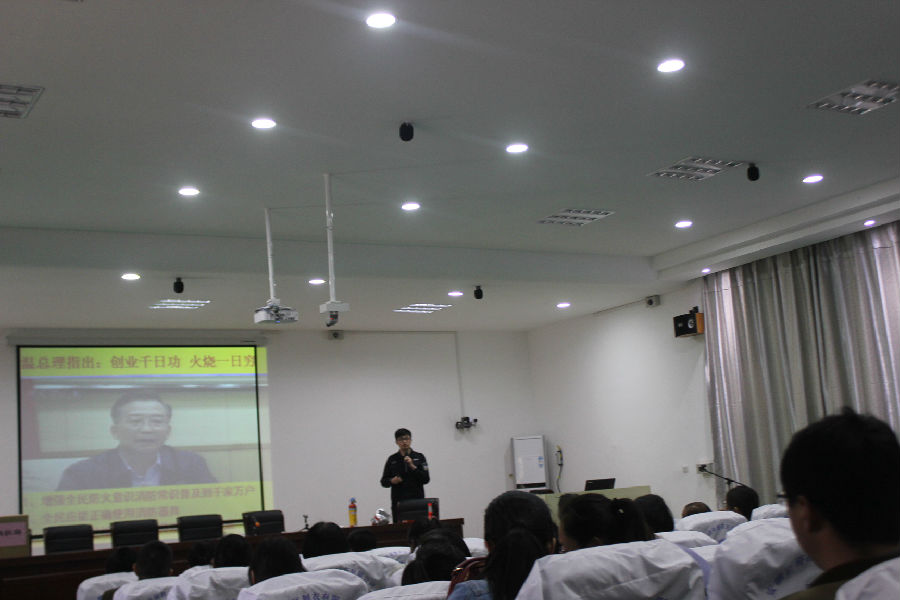 夏季是火灾多发季节,为普及消防安全知识,增强老师和学生消防安全意识,4月25日下午亳州工业学校举办了一场消防知识安全讲座,邀请阜阳久安防火中心的兰盾警官为大家讲解火灾逃生和自防自救能力等知识。