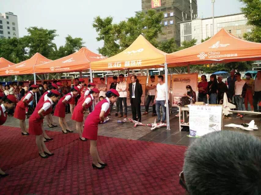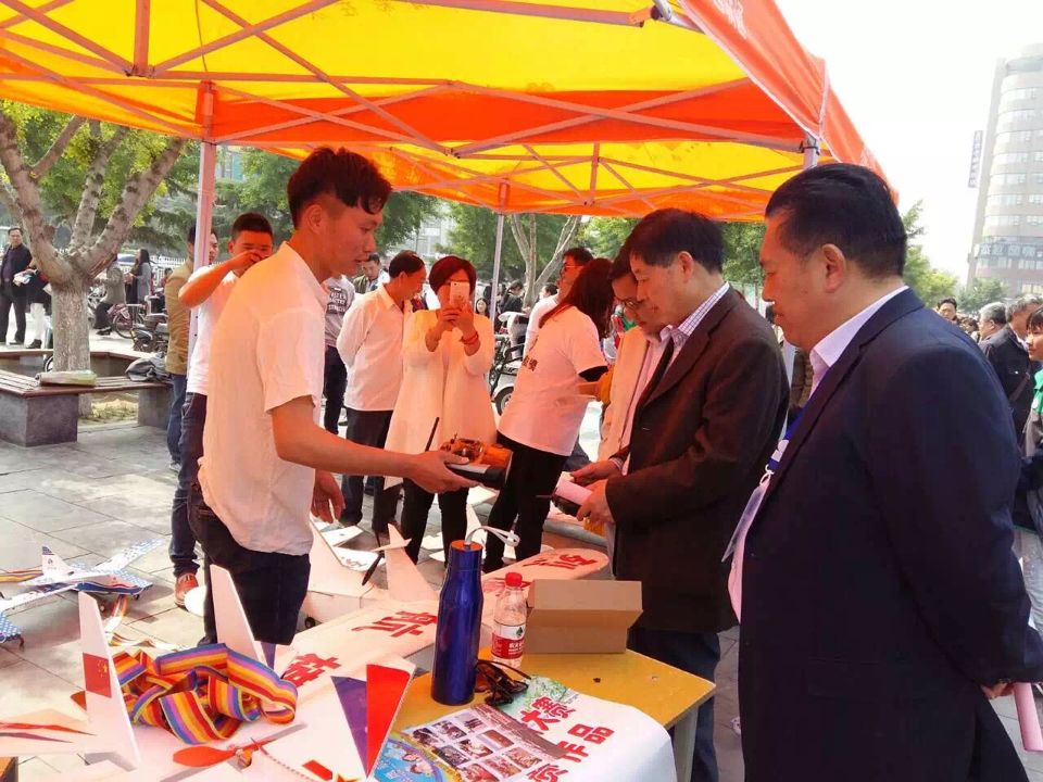 亳州市第二届职业教育活动展中由我校师生自主研发设计并制作的航模飞机翱翔天空,飞行中通过语音功能道出了我校莘莘学子的心声:德塑人生,技行天下。