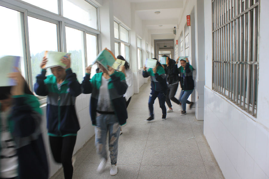 上午8点40分钟,随着警报的响起,该校各班主任老师迅速到达各班协助上课老师一起组织学生疏散,其他老师们也在第一时间赶到自己当时所在楼层拐角处配合疏散学生。各班学生在老师们的指挥下,按照指定路线,猫着腰,用书顶着头迅速有序地进行紧急疏散。随后,校安保科、学生处对本次防震救灾紧急疏散演练总结。